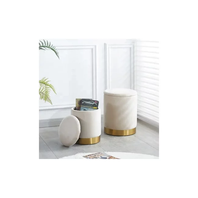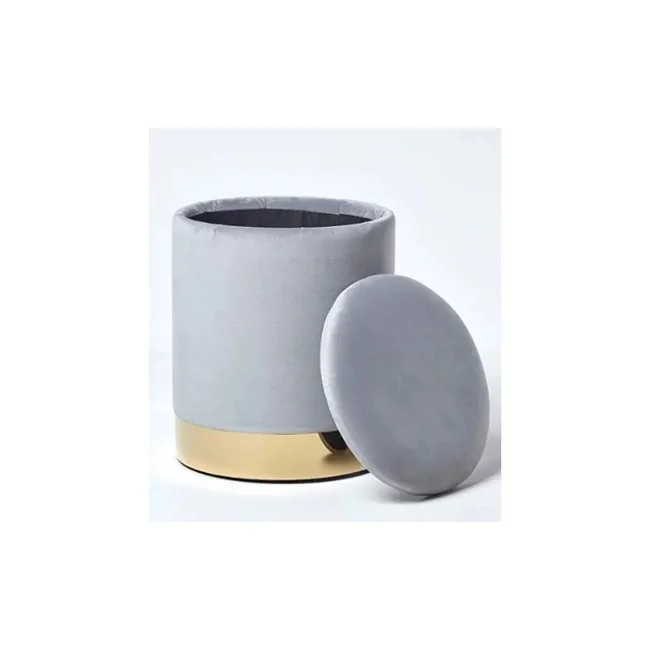 Taburet Devon, catifea premium cu spațiu depozitare, 31x38x31 cm, gri-auriu
