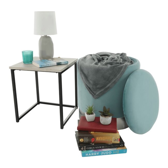 Taburet Devon, catifea premium cu spațiu depozitare, 31x38x31 cm, verde-auriu