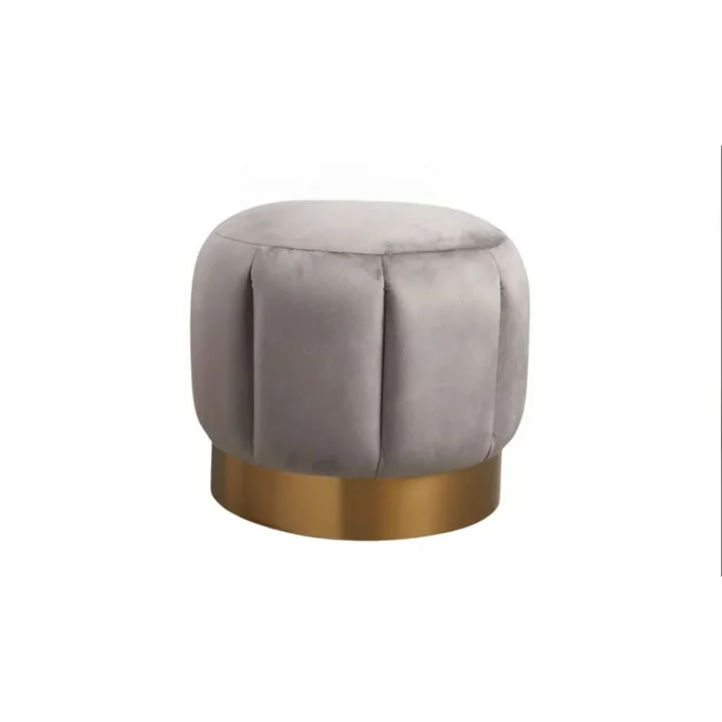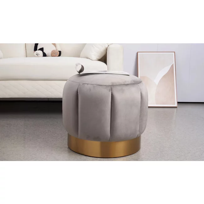 Taburet Pufa, design modern cu bază aurie, tapițerie catifelată, 50x50x46 cm, gri